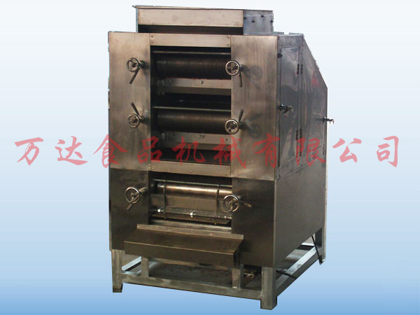產(chǎn)品特點(diǎn):本機(jī)主要適應(yīng)于花生仁、果仁類切碎,由振動(dòng)上料、切碎、分級(jí)三部分組成,其中振動(dòng)上料能使花生米均勻撒在挖料斗上,有利于滾刀均勻切碎,分級(jí)部分使用螺旋式滾筒,配以不同規(guī)格篩網(wǎng),從而達(dá)到需求規(guī)格。本機(jī)特別:產(chǎn)量高、粒度均勻、耗料少、噪音小、花生碎不返油